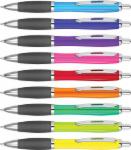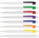 A great recession-busting push button pen - opaque white barrels with coloured trim |